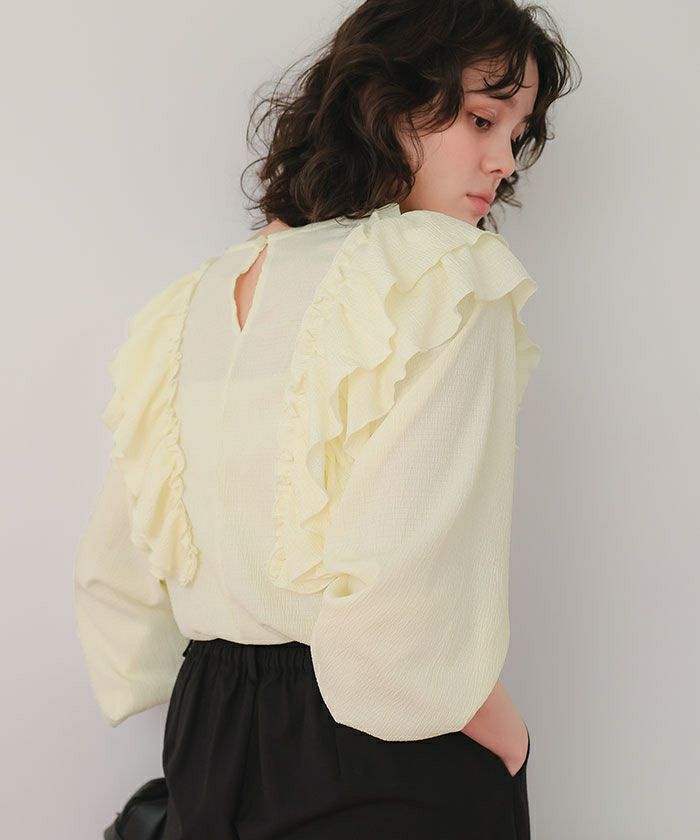 ・繊細な楊柳素材が生み出す軽やかな揺れ感で、女性らしさが香るフリルブラウス
