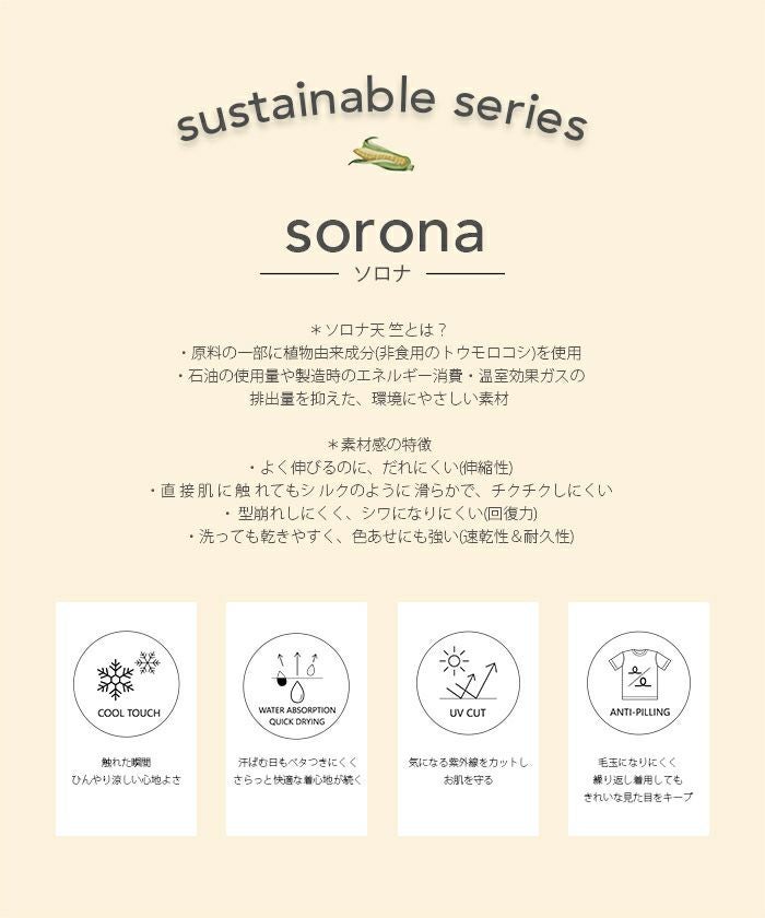 ・環境に配慮したソロナ天竺素材(※)を使用し、なめらかな肌触りと快適な着心地を実現