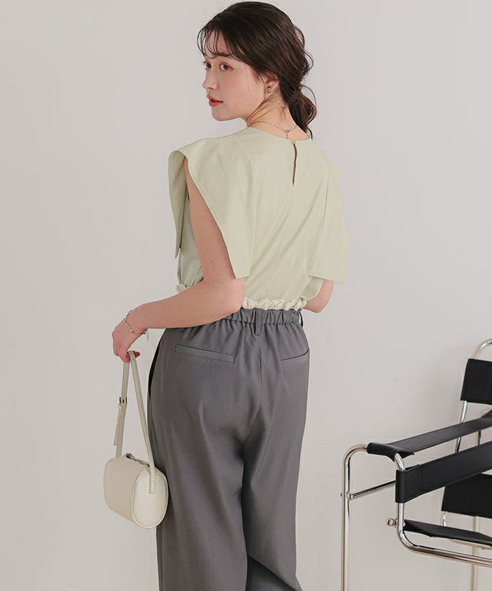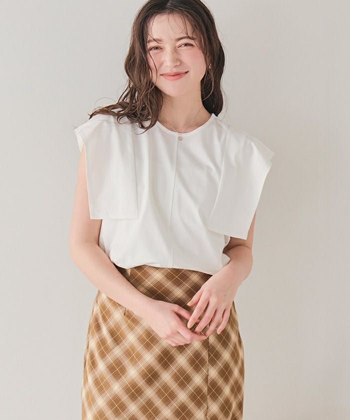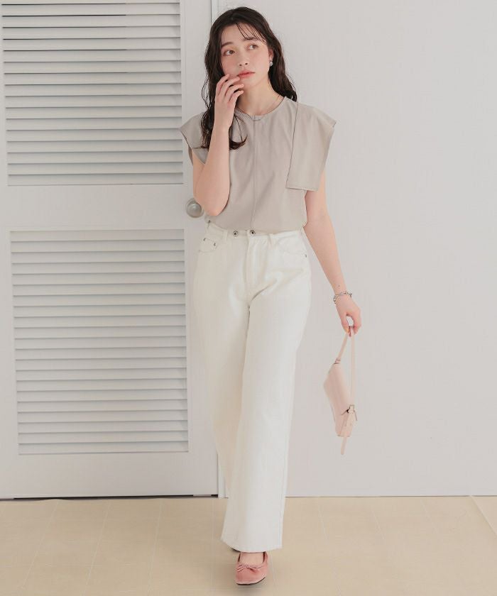 ・立体的なスクエアスリーブが、二の腕をしっかりカバーしながら甘さと上品さを両立してくれる