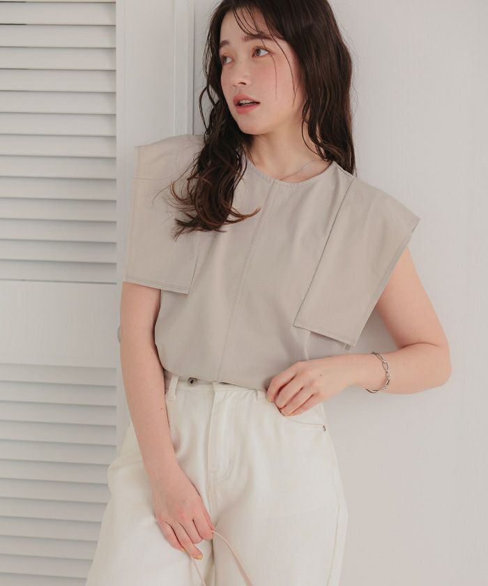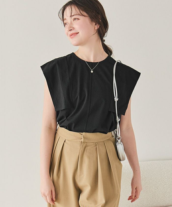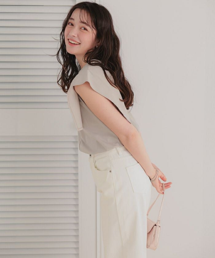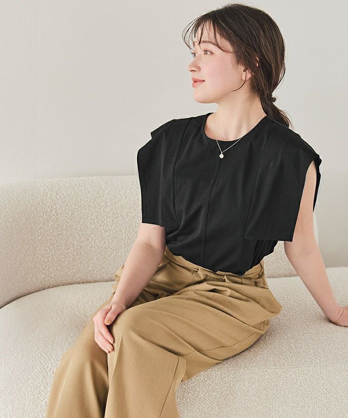 【サステナブル】スクエアスリーブカットソートップス【メール便可/100】