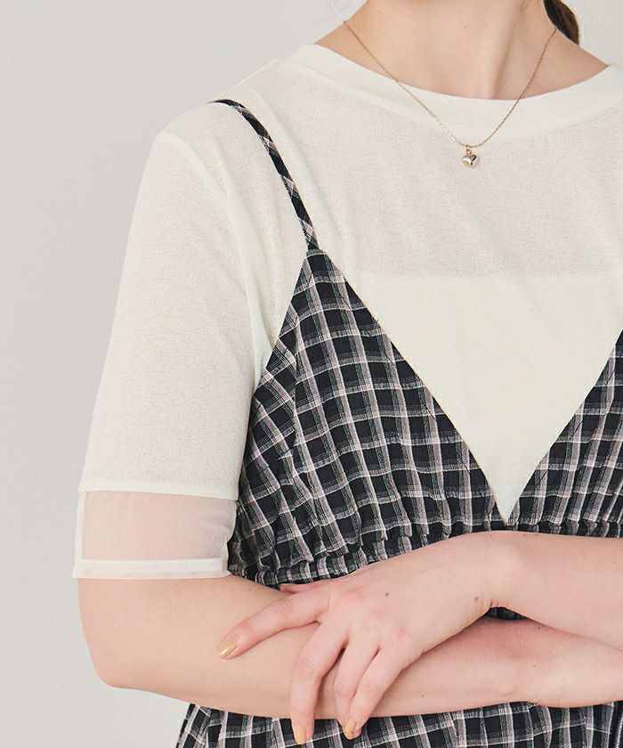 ・ハーフスリーブ×シアーのバランスで、二の腕をやさしくカバーしながら軽やかな印象に