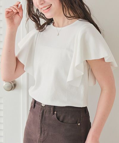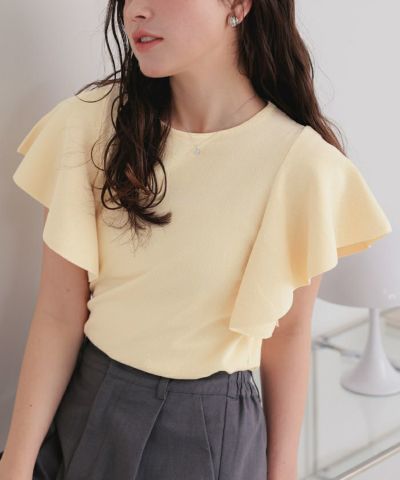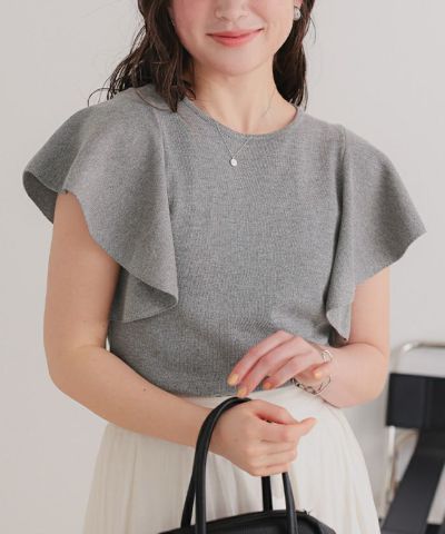 ・袖にあしらったフレアデザインが、動くたびにやさしく揺れるニットトップス