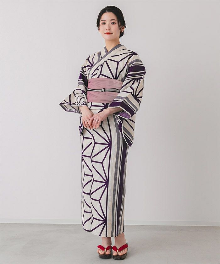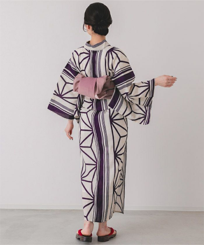 皺になりにくい「綿」の良さを活かした綿麻生地の仕立て上がりの古典柄浴衣です。