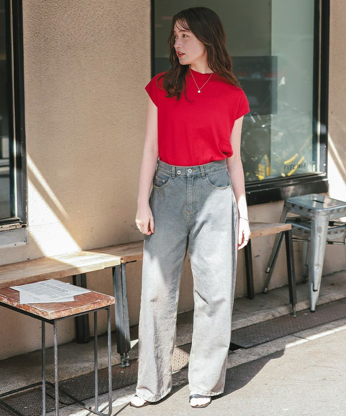 着用 / サイズ:F カラー:レッド、ネイビー、ネイビー2、オフホワイト/ブラック、ミントグリーン、杢グレー、グレージュ、アイボリー、ブラック