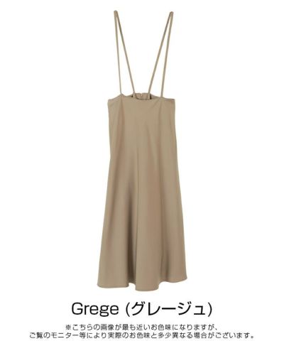 光沢感のある生地と女性らしいシルエットが魅力のストラップ付きスカート。