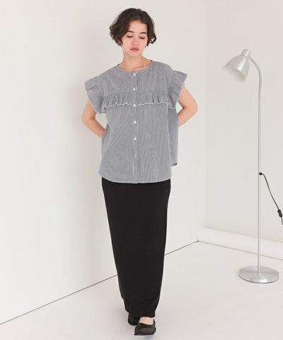 ・シンプルながらもフリルディテールが可愛いフレンチスリーブフリルブラウス。