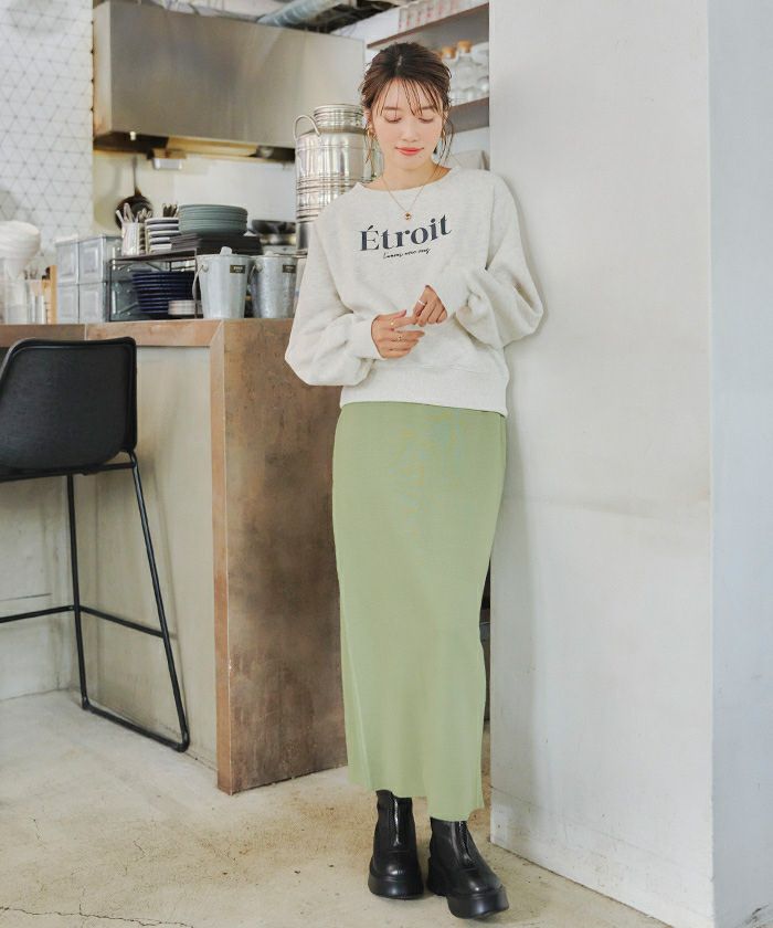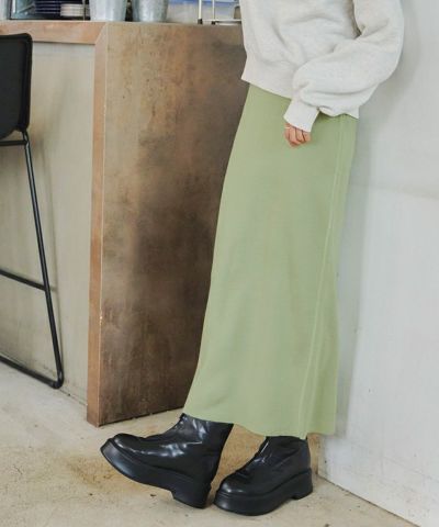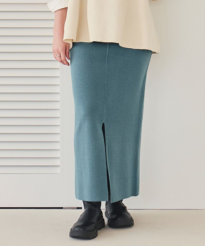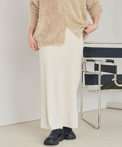 ・細見え効果の期待できるIラインシルエットが女性らしいロング丈ニットスカート。