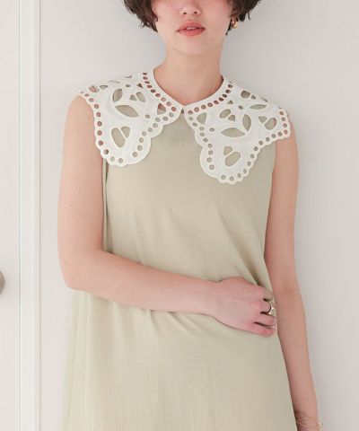 レースつけ襟付ノースリーブワンピース
