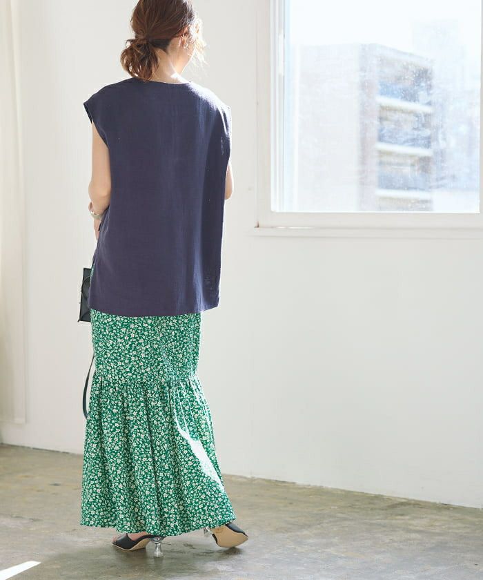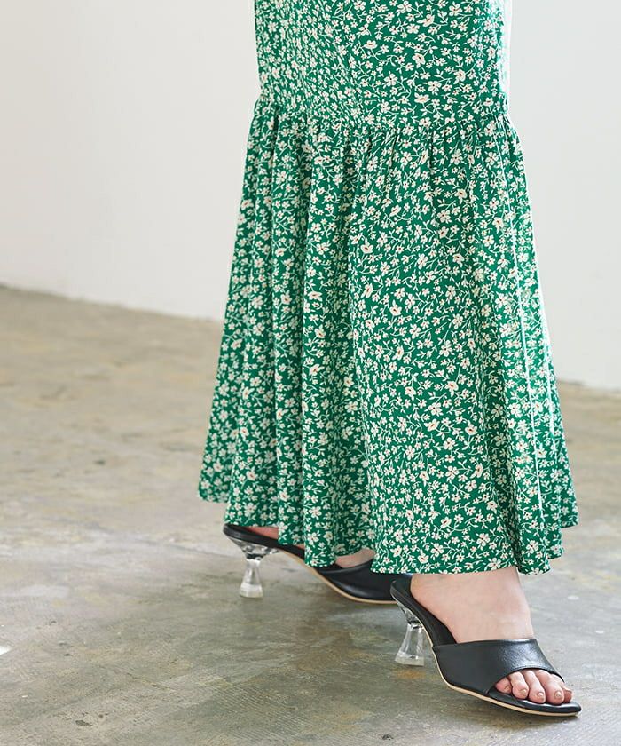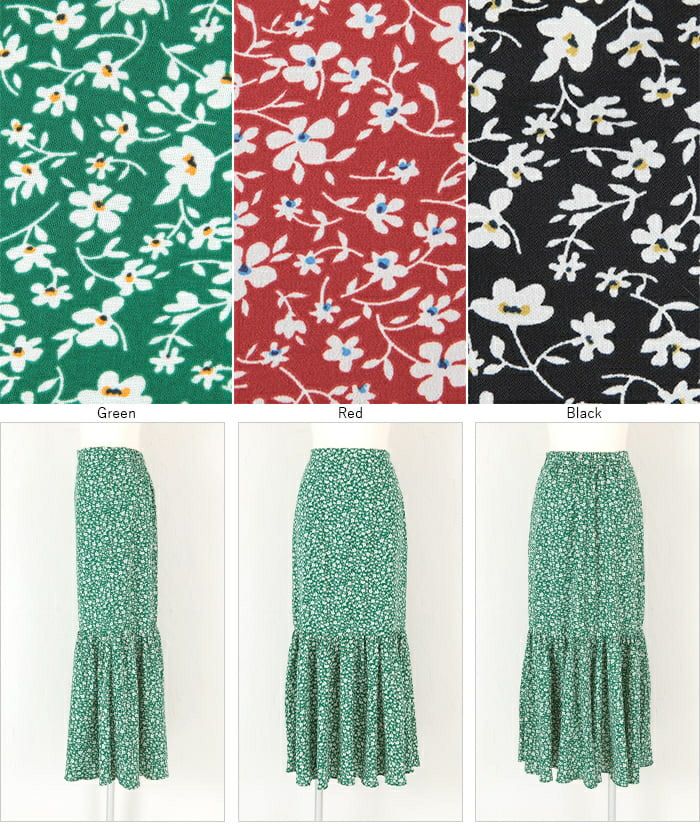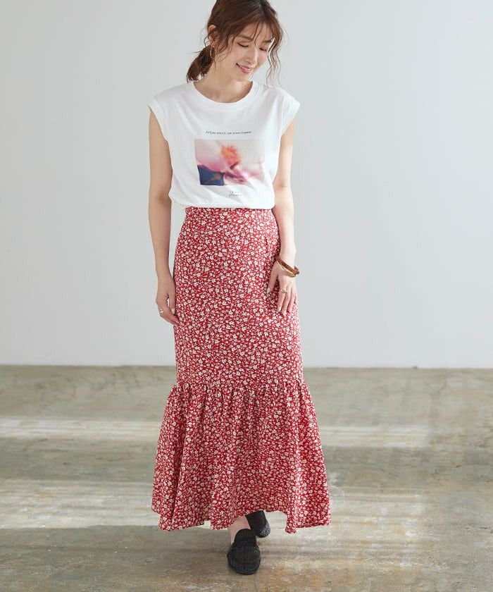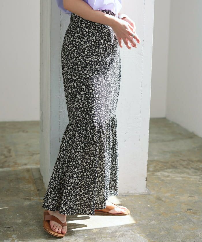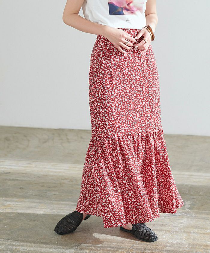 程よいゆるさのシルエットで大人女子にぴったりの花柄マーメイドロングスカート。