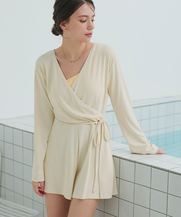 ・おしゃれにカバーアップをしてくれる人気のカシュクールラッシュガードの薄手タイプを展開。