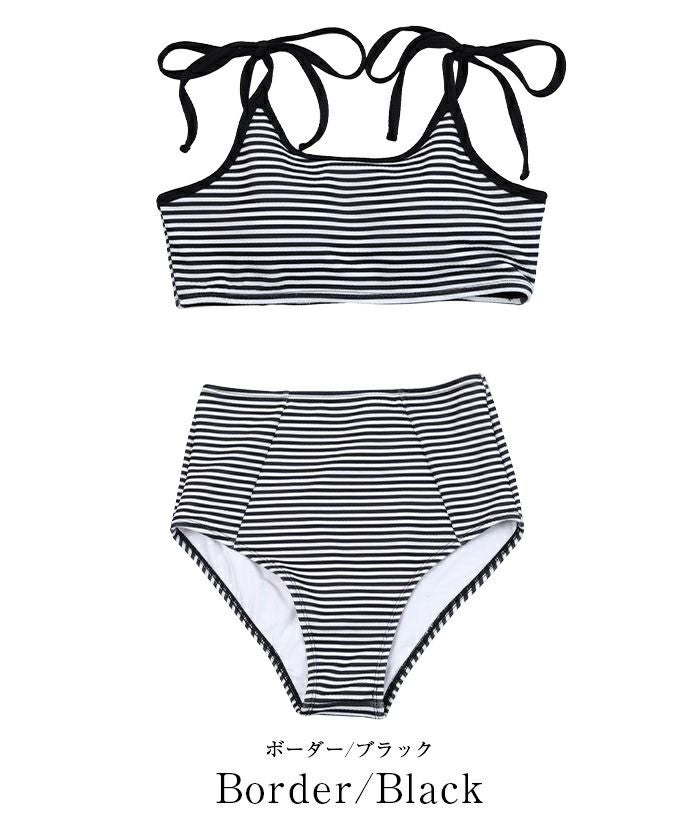 ・ショルダーリボンのバイカラーがポイントのハイウエストビキニ。