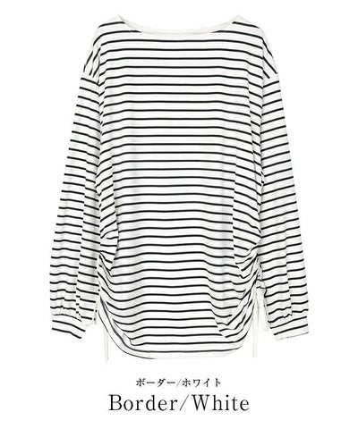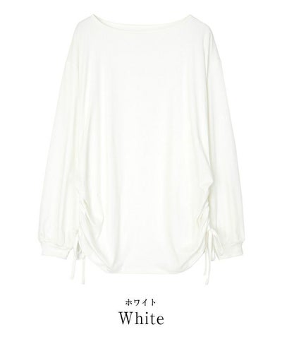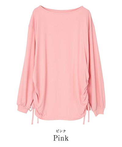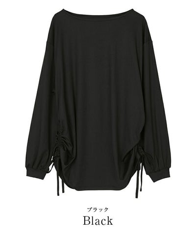 ・ゆったりとした抜け感のあるデザインのサイドギャザーラッシュガードトップス。