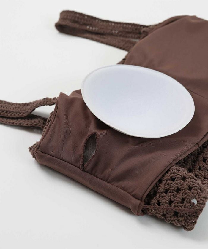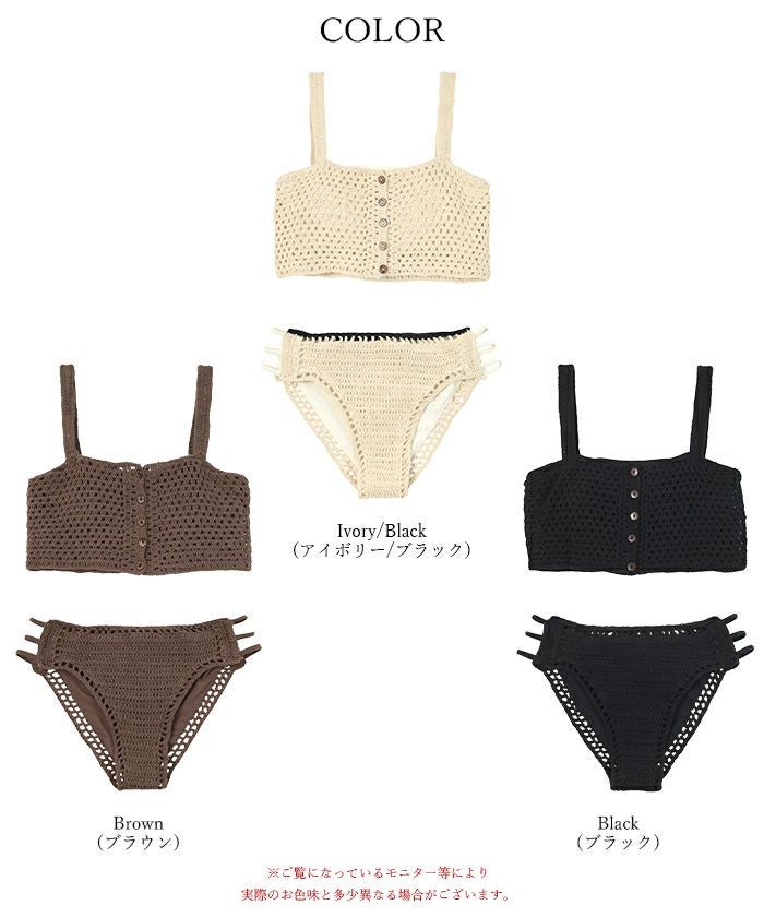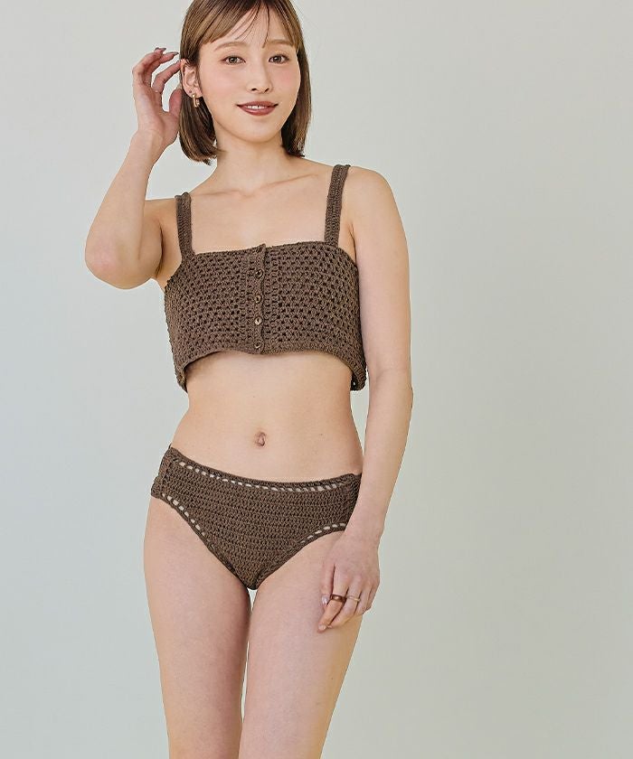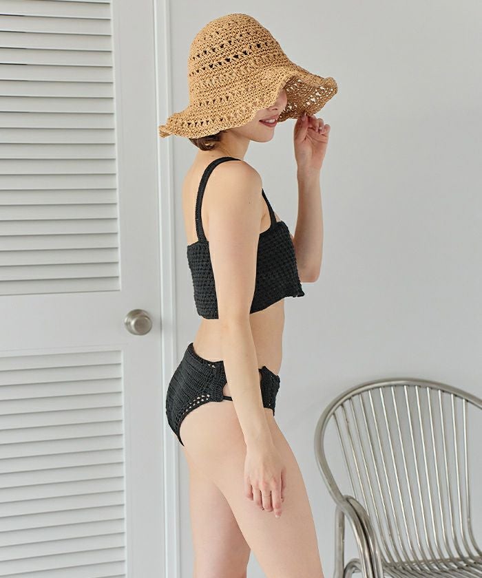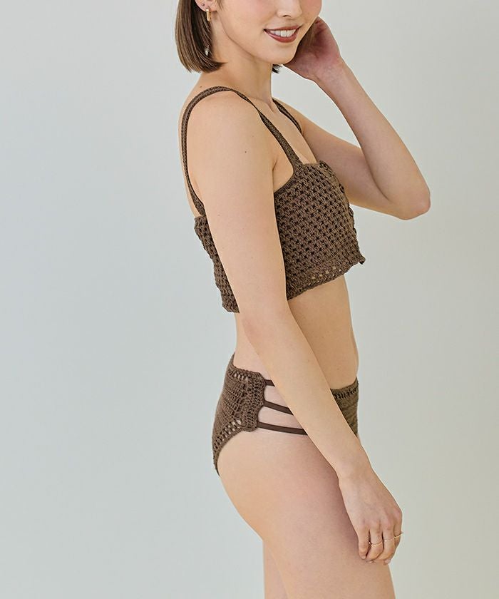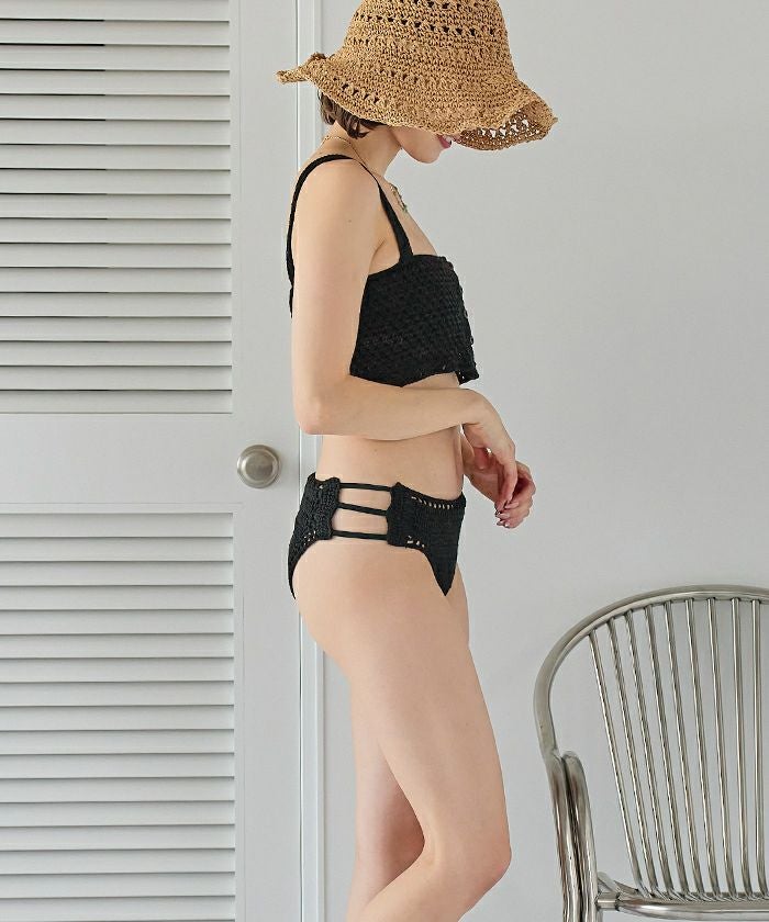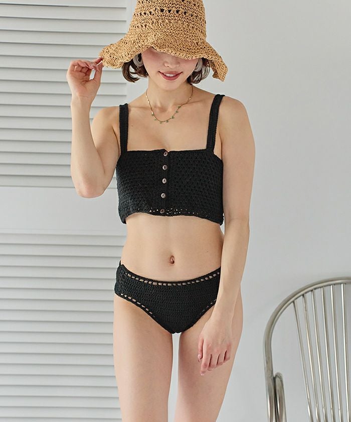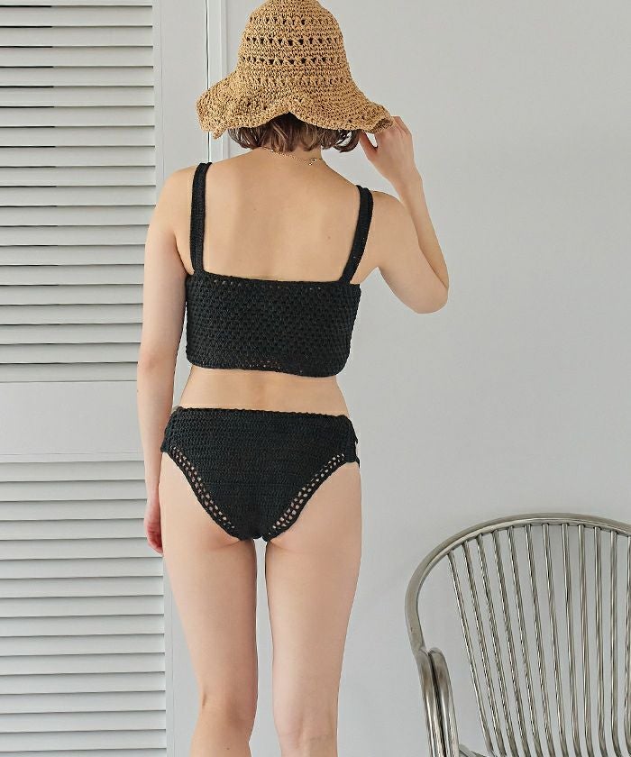 ・大人シンプルデザインのスクエアネッククロシェニットビキニ。