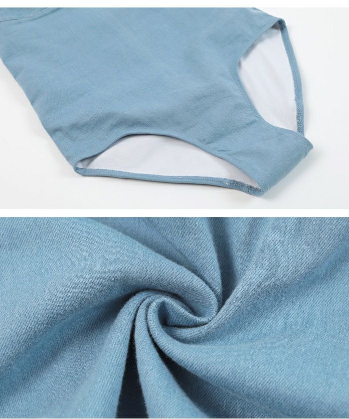 生地加工の工程上、ブルーデニムは漂白剤を使用して加工を施している為、少々匂いが残っている場合がございます。予めご了承ください。