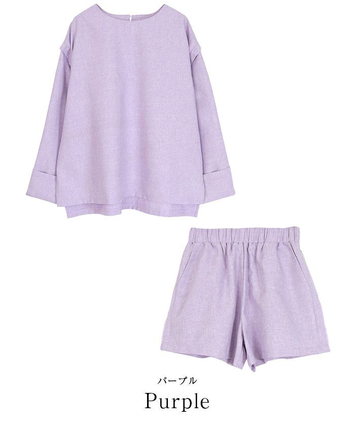 ・トップスの袖とショートパンツのサイドにカットオフデザインを入れ、抜け感のあるスタイリングを叶えます。