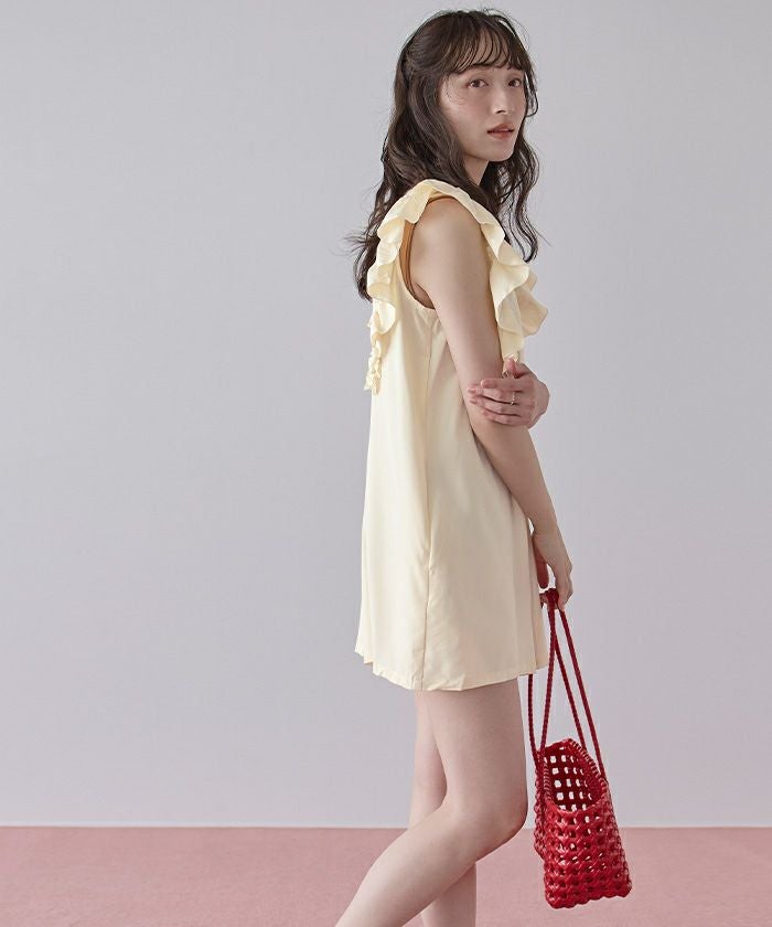 お腹周りは特に露出はしたくはなかったので、体型カバーができて、他にインナーも特に必要ないのがめちゃくちゃいいです! フリルも程よくついていて二の腕隠せるのも嬉しいです★