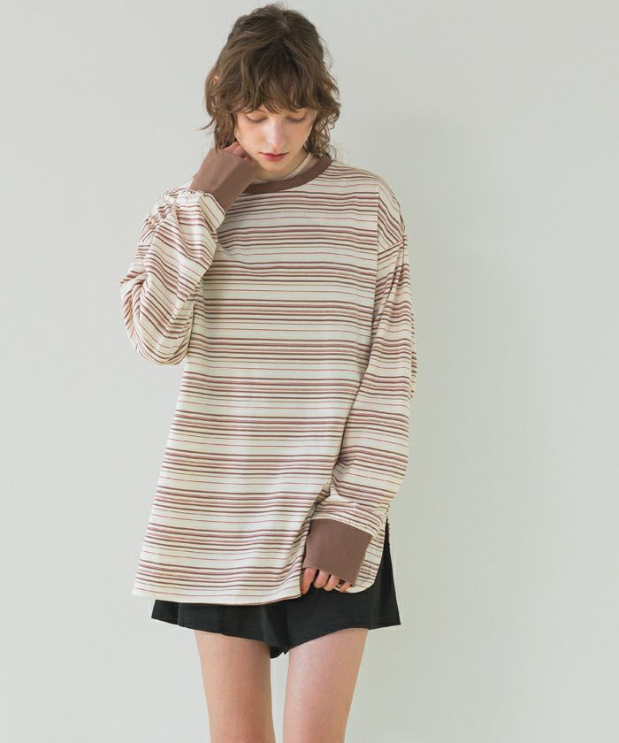 ・目を惹く細かなマルチボーダーがカジュアルなスタイリングを叶えます。