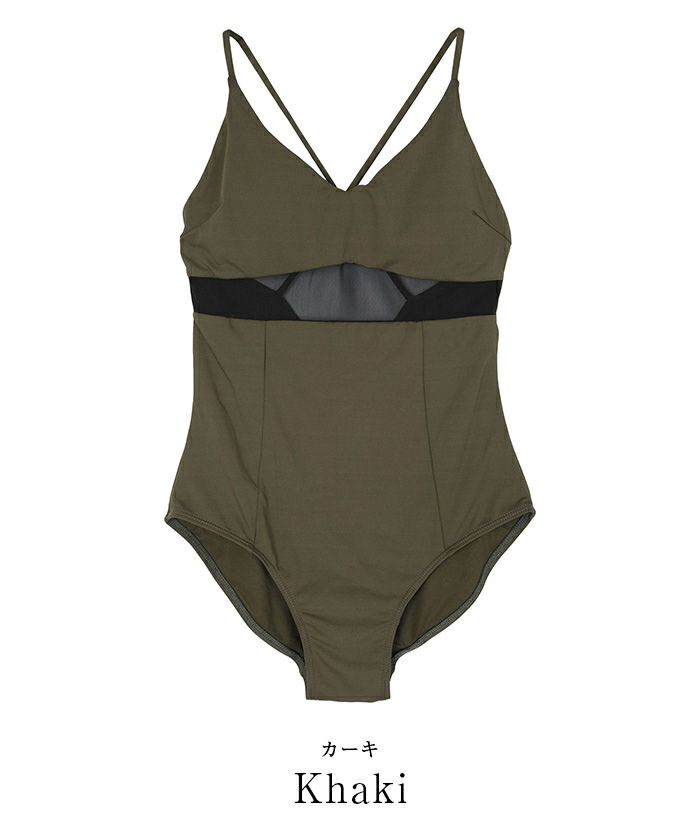 商品情報 バッククロスデザインが魅力的、スタイリッシュでヘルシーな印象のワンピース水着。