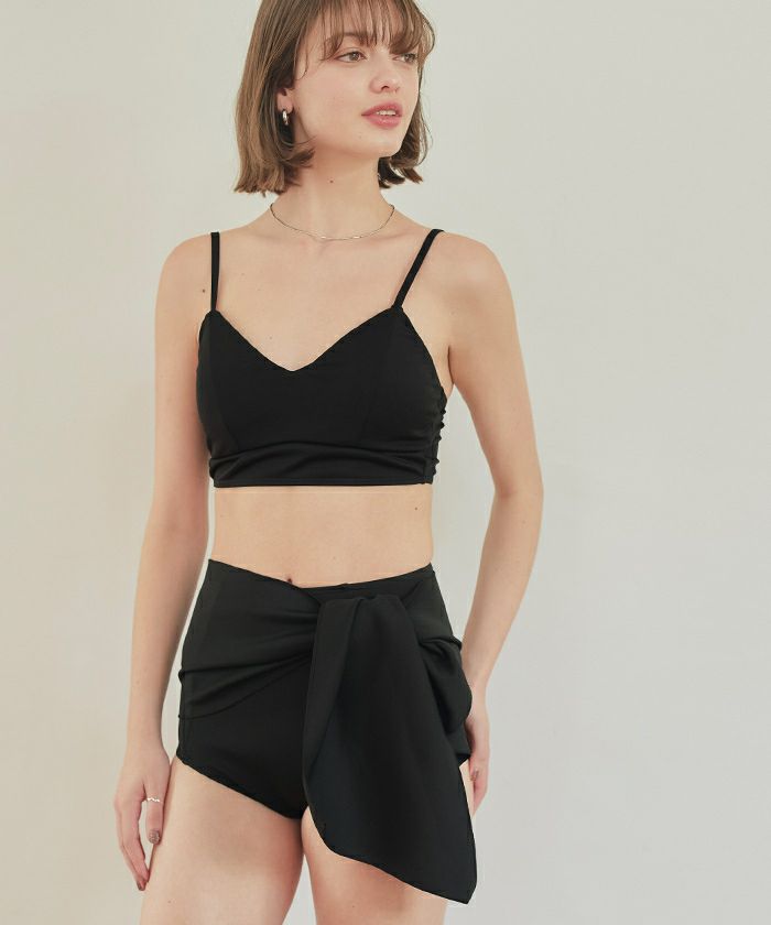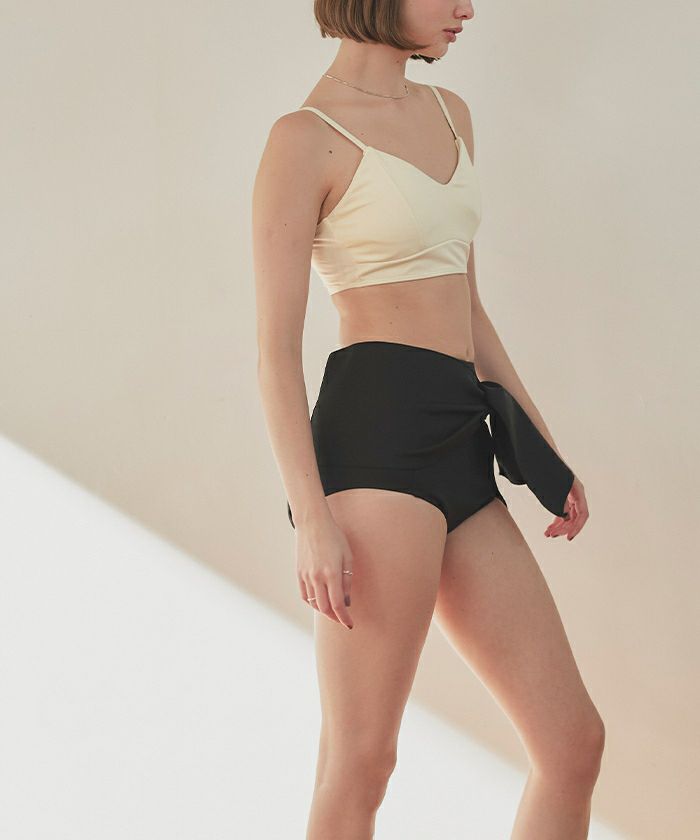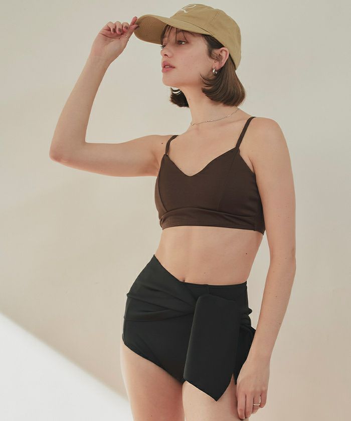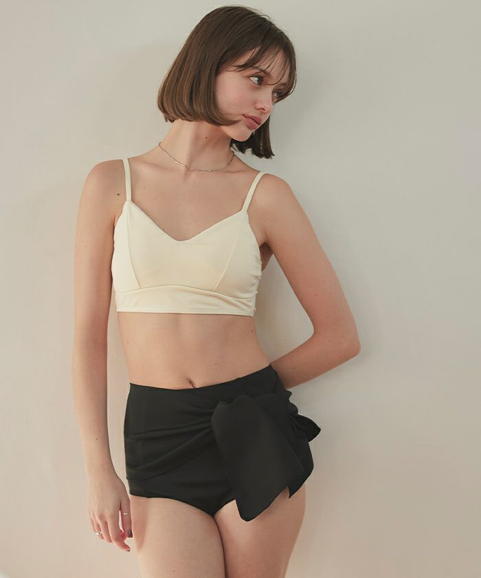 トップスはノンワイヤーなのでストレスフリーに着用でき、バックシャーリングデザインで着脱も簡単◎