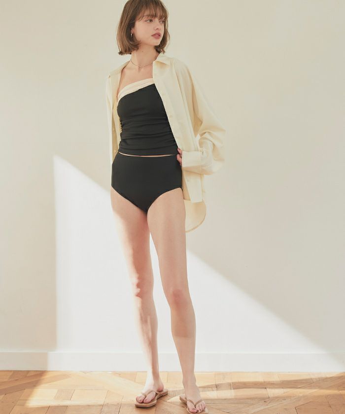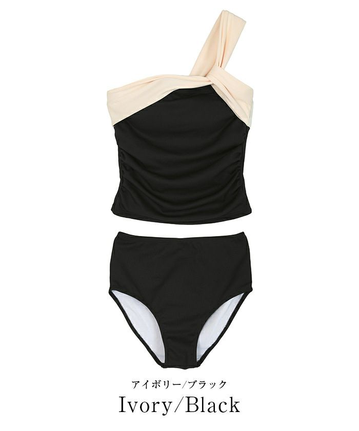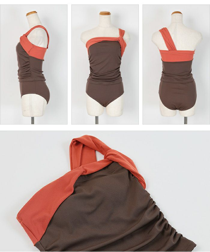 ワンピース風にスタイリングもできる2wayワンショルダービキニ。