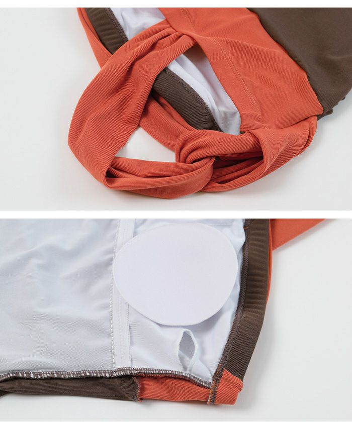 遊び心のあるバイカラーデザインの肩紐が大人可愛く、ビーチやプールで映える1着です。