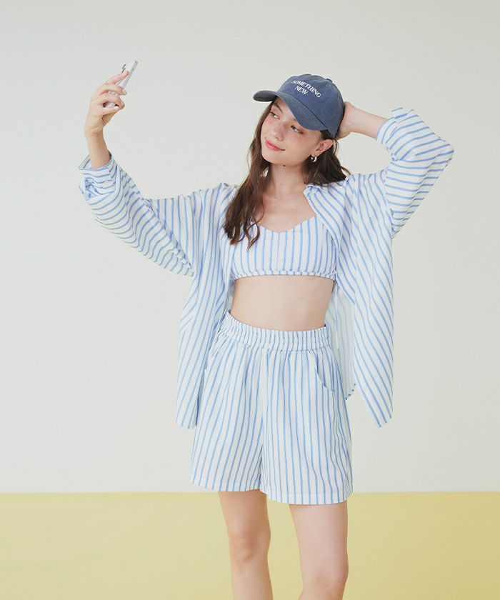 同じストライプ柄の商品展開もあるので、一緒にコーディネートできる水着です◎