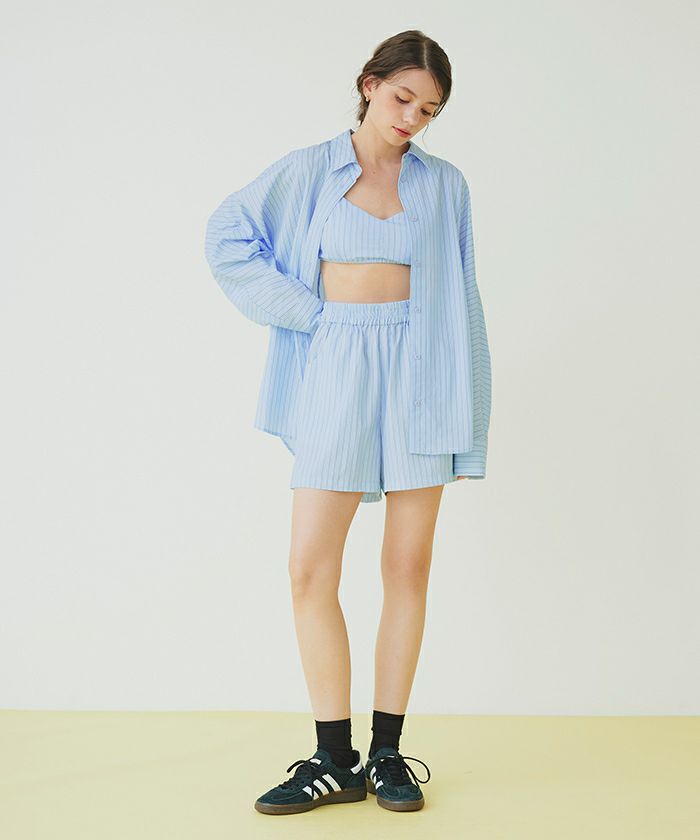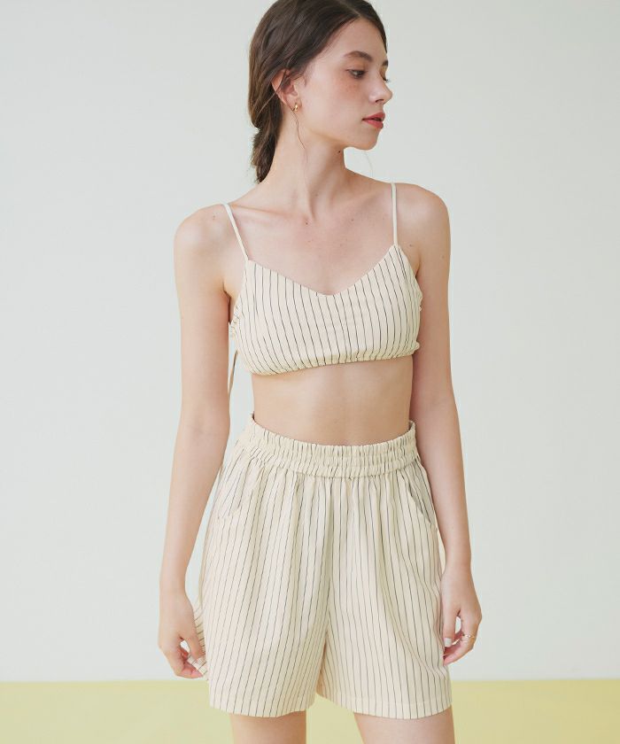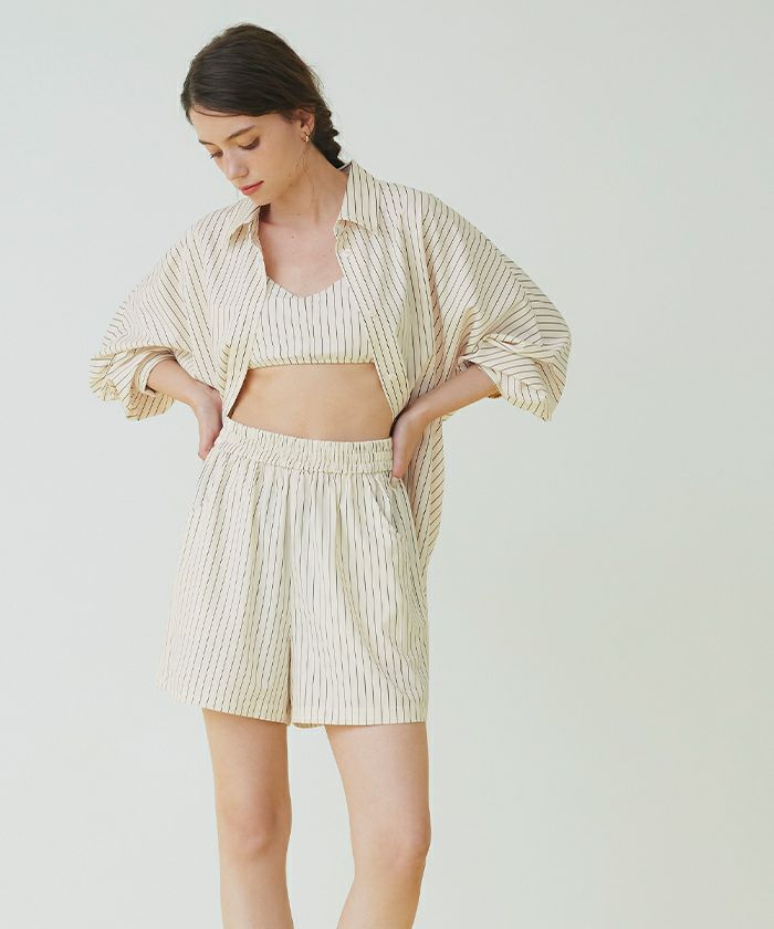 ショーツにはサイドにギャザーを入れて、こだわりのあるデザインに。