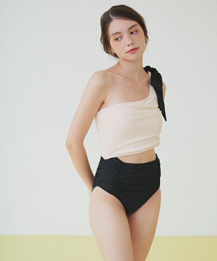 ワンショルダーカットアウトワンピース/水着【SEADRESS シードレス】