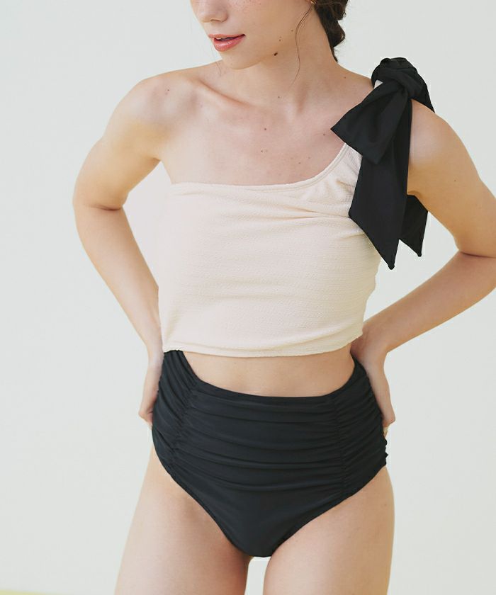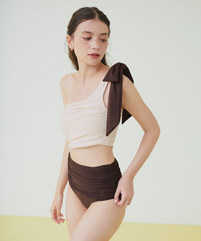ラッシュガードとスタイリングしやすいように、肩リボンは取り外しの出来る2way仕様。