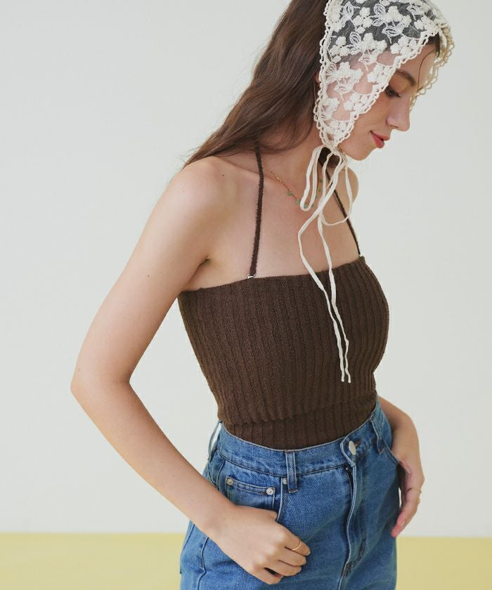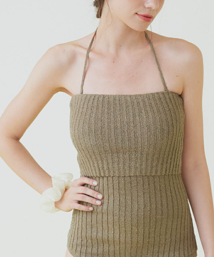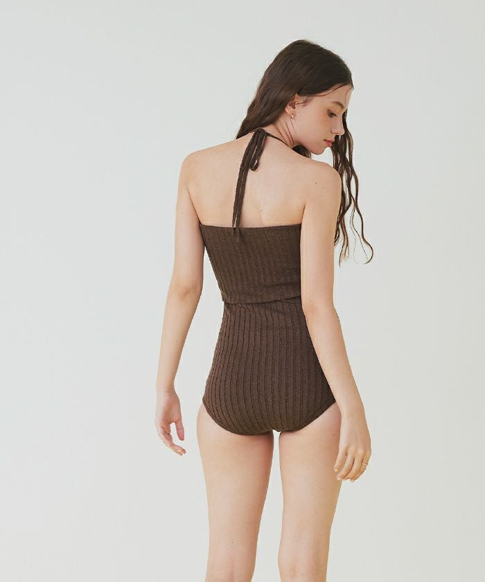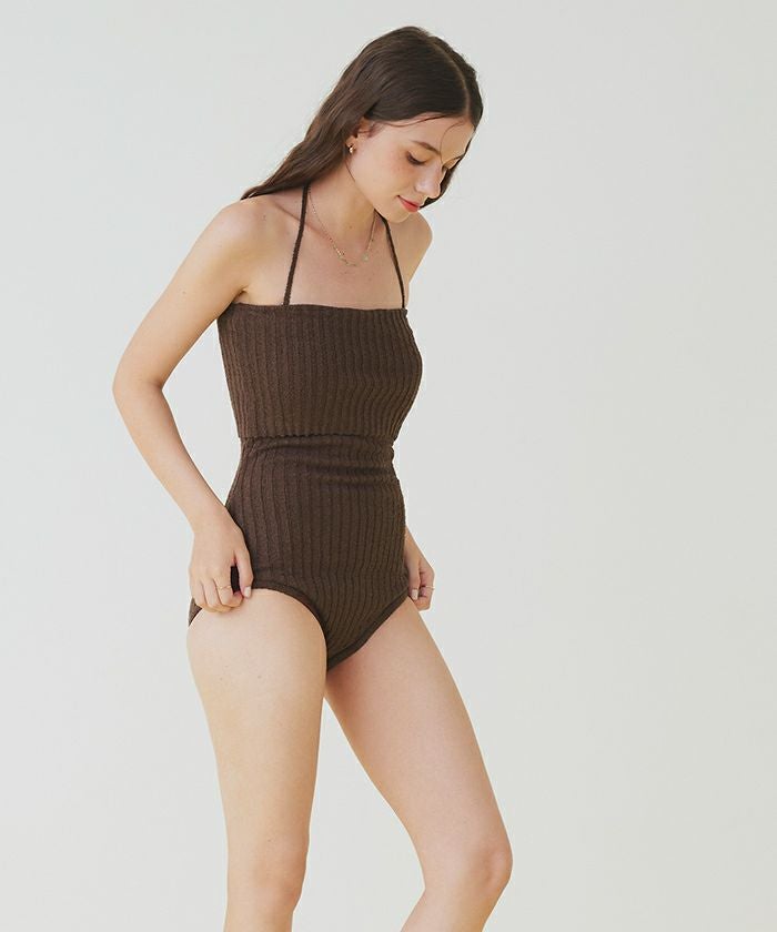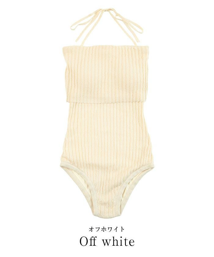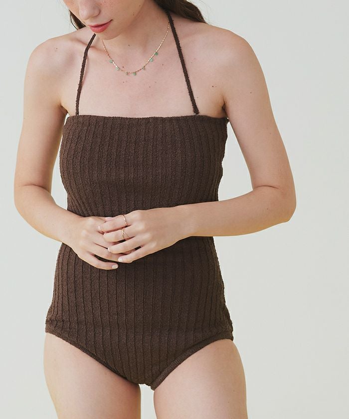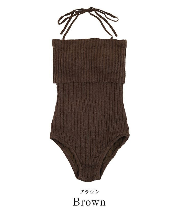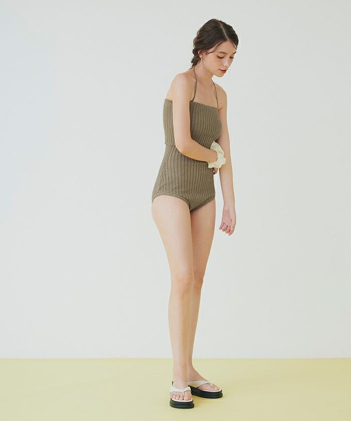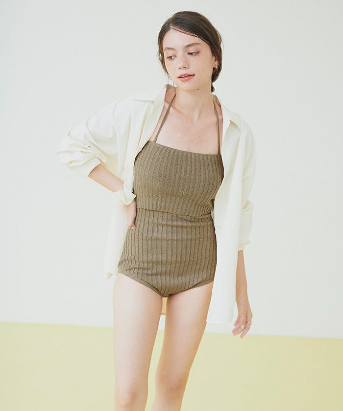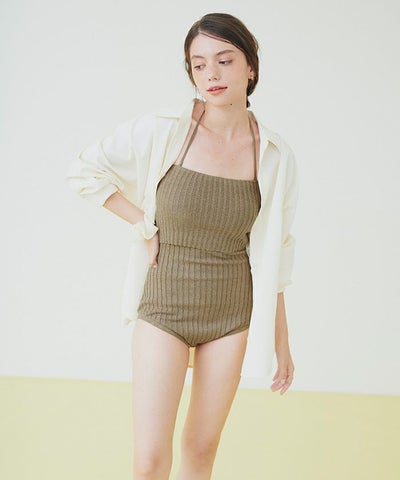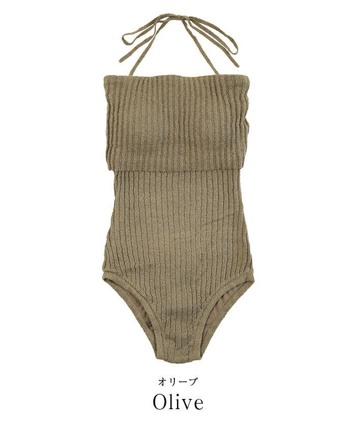 ネップ風の立体感がポイントのリブニットワンピース水着。