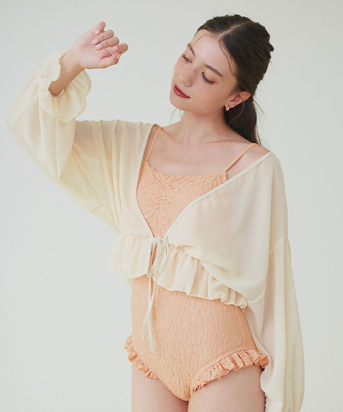・フリルデザインが大人可愛いボレロ付きセット水着。