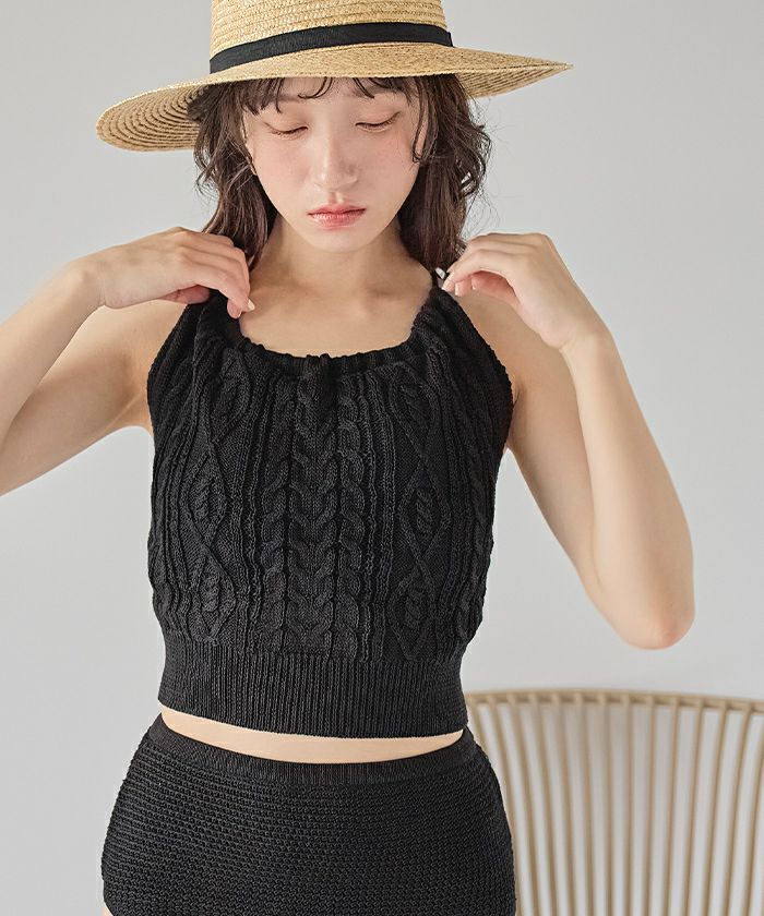 ・ビーチだけでなく、カップ付きアメスリニットトップスとしてデイリーユースのコーディネートにも大活躍のアイテムです。