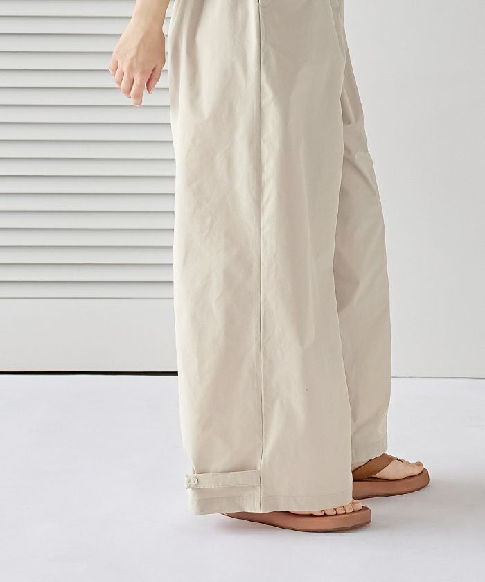 ・ワイドパンツの裾は、ボタンを留めることでシルエットが変わる2way仕様&嬉しいポケット付き