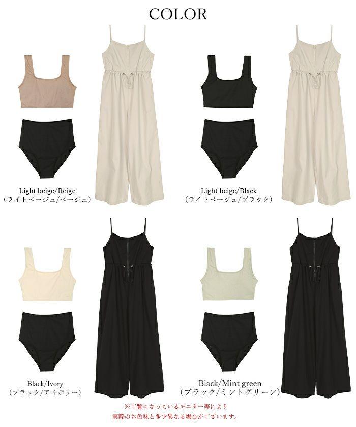 ・ウエストマークデザインでハンサムなスタイリングを叶えるキャミソールオールインワン付き3点セット水着。