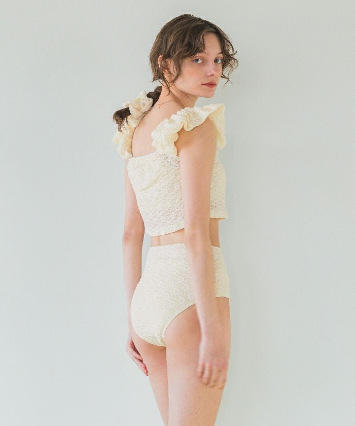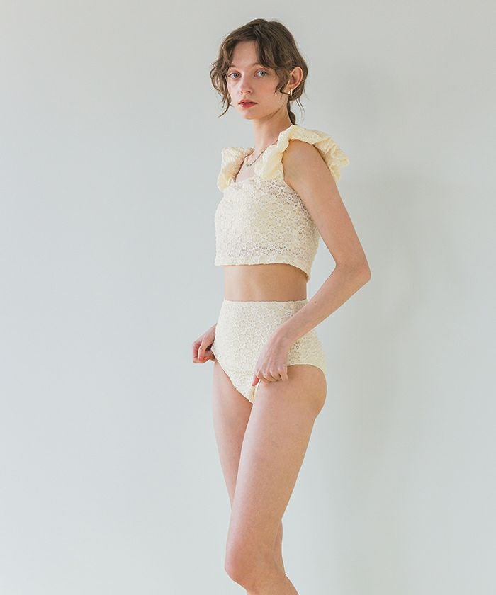 ・甘さの中に大人っぽい雰囲気のあるギャザーショルダービキニ。