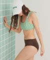 ・ビーチ映えする柔らかなパイル素材がポイントのショルダーギャザーデザインビキニ。