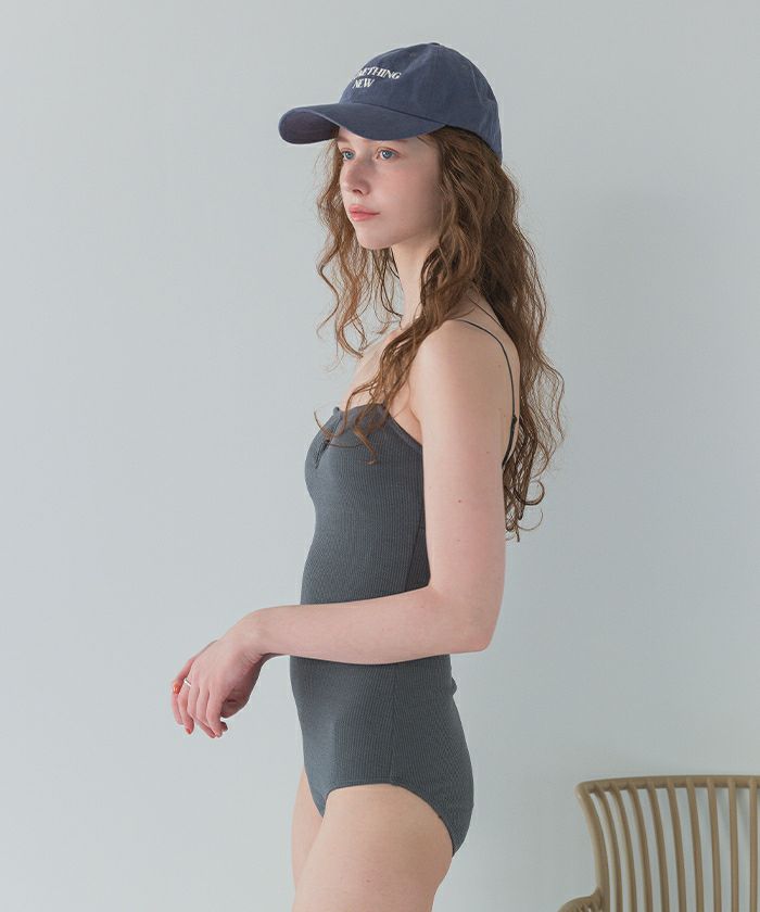 ・柔らかい太めのリブ素材がポイントのシンプルワンピース水着。