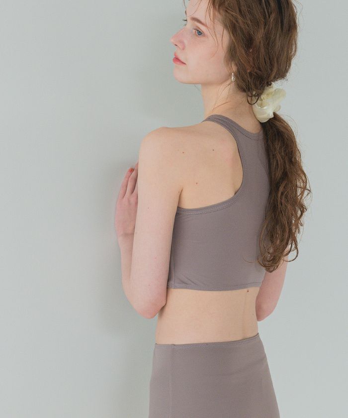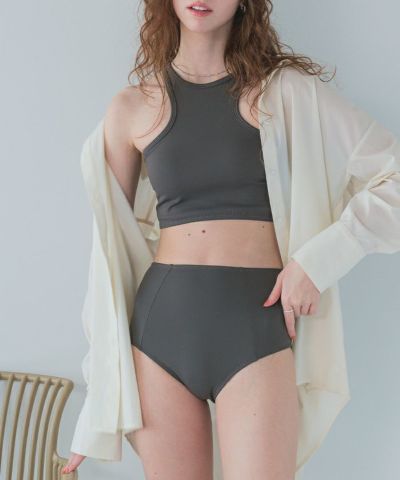 ・タンクトップとハイウエストショーツのこだわりの丈感でバランス良く着用できるのがポイント◎