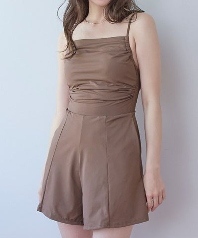 ・バックオープンデザインで抜け感溢れるロンパース水着。