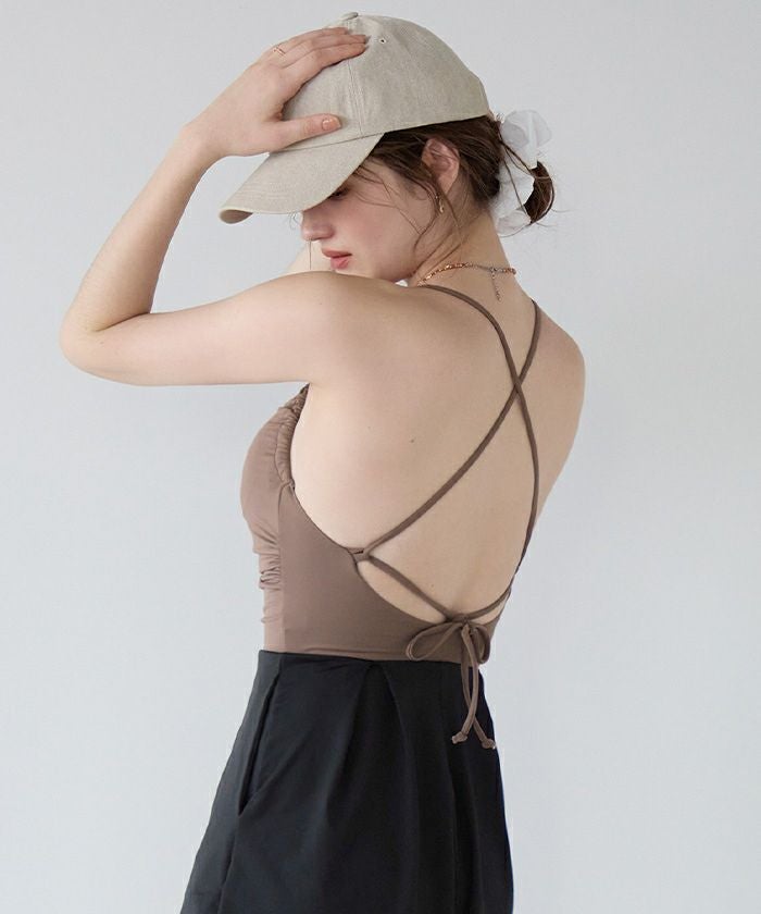 ・胸元の高さも自由自在&バックリボンでフィット感を調節できる優秀アイテム。