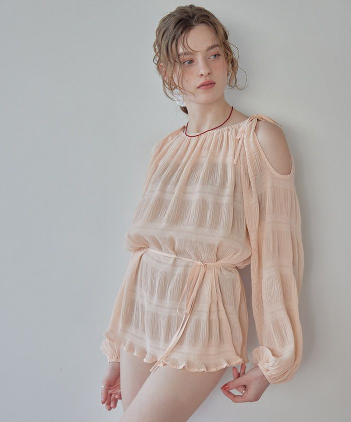 ・肩まわりをさりげなく見せるデザインで、ヘルシーな抜け感を演出。