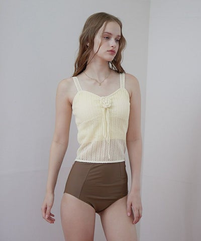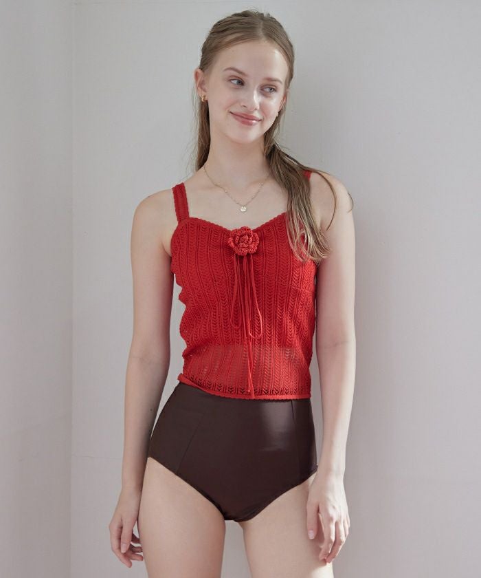 ・繊細な編地のニット素材がナチュラルな肌見せを演出し、甘くなり過ぎない上品な印象に。