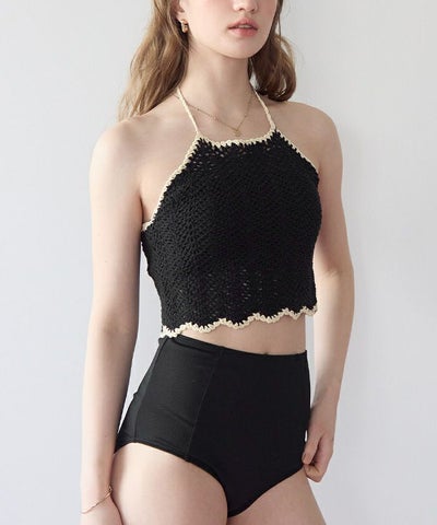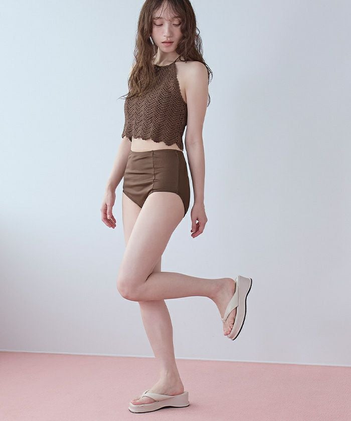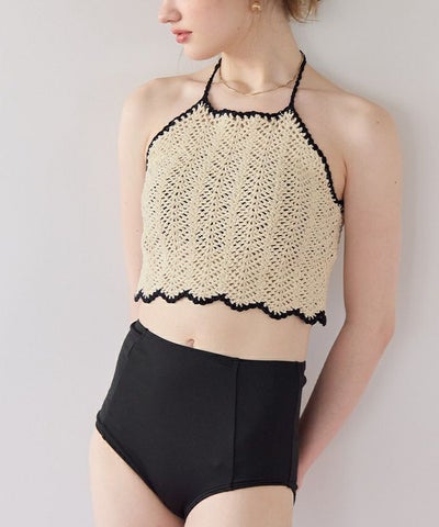 ・クロシェ編みのホルターネックトップスがセットになった3点水着。