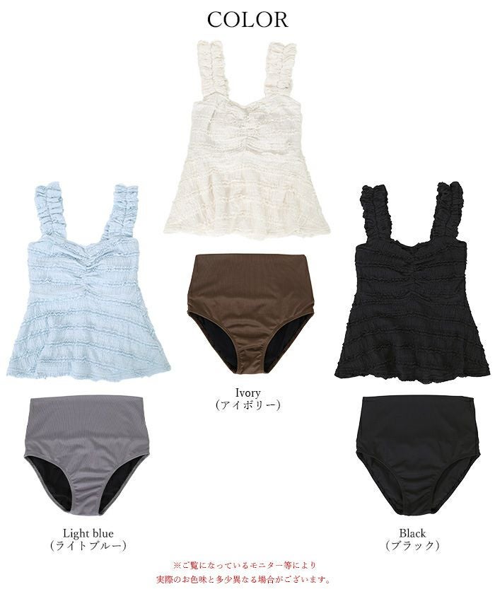 ・立体感のあるフリルジャガード素材が魅力のペプラムフレアビキニ。