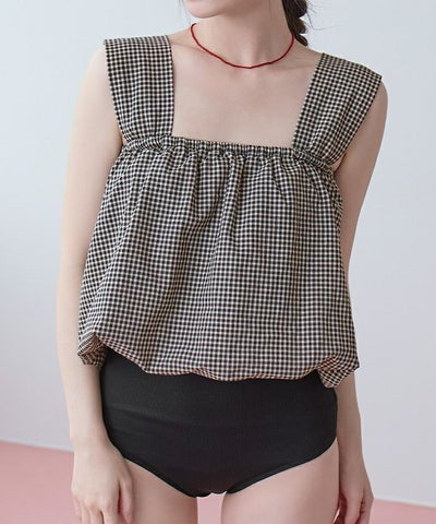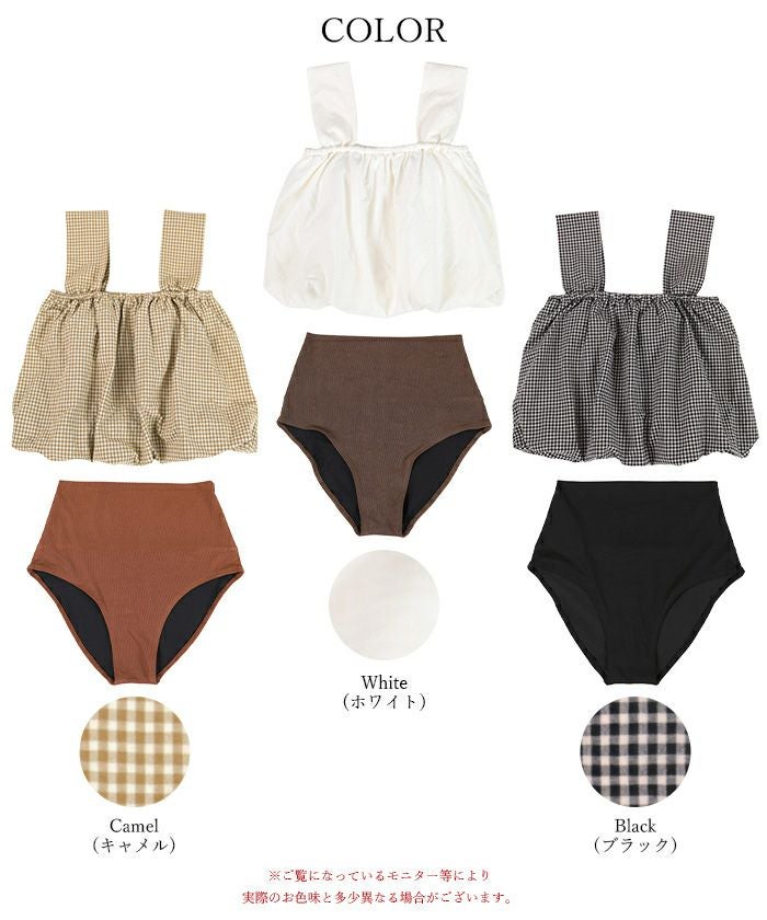 ・ゆったりとしたバルーンシルエットが可愛いビスチェデザインのビキニ。