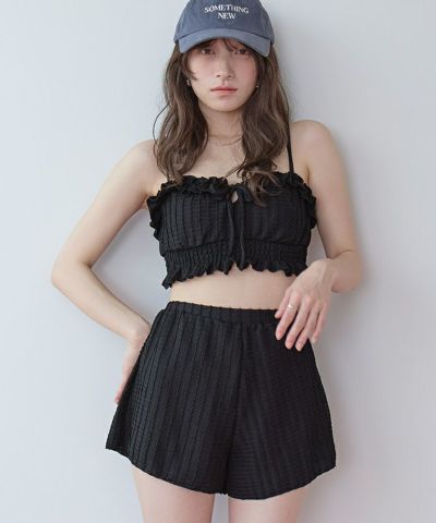 ・同素材のショートパンツ付きで体型カバーにも◎。