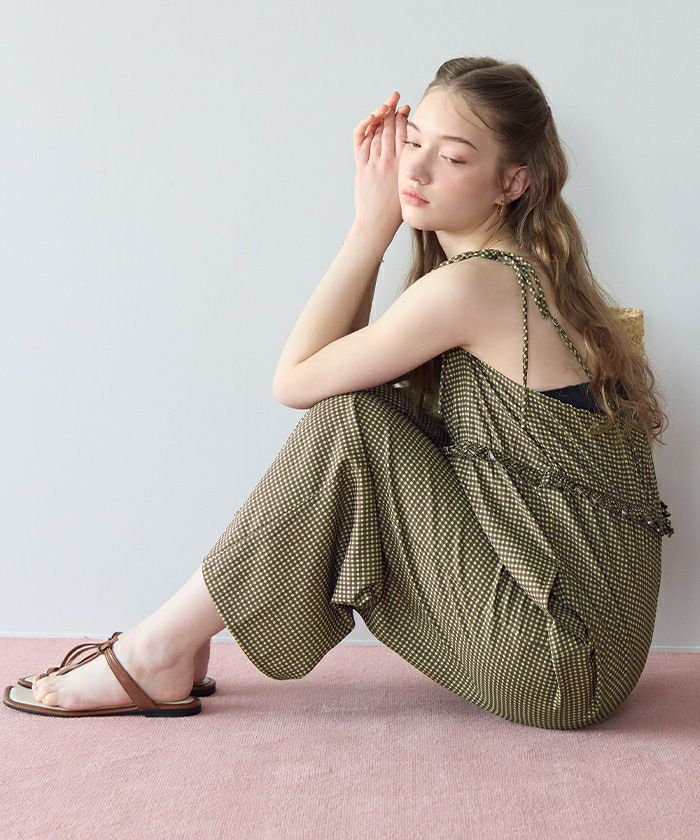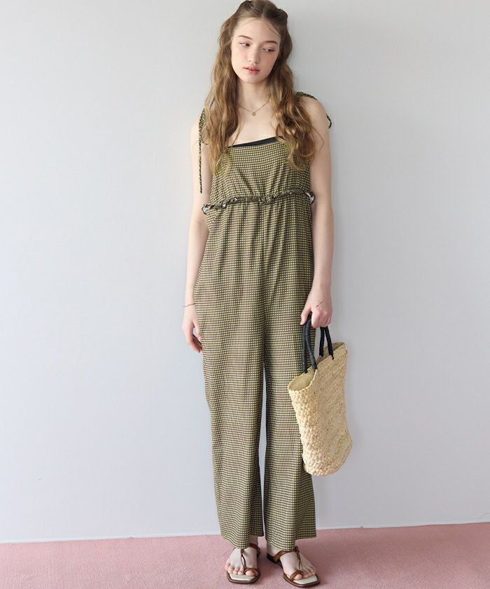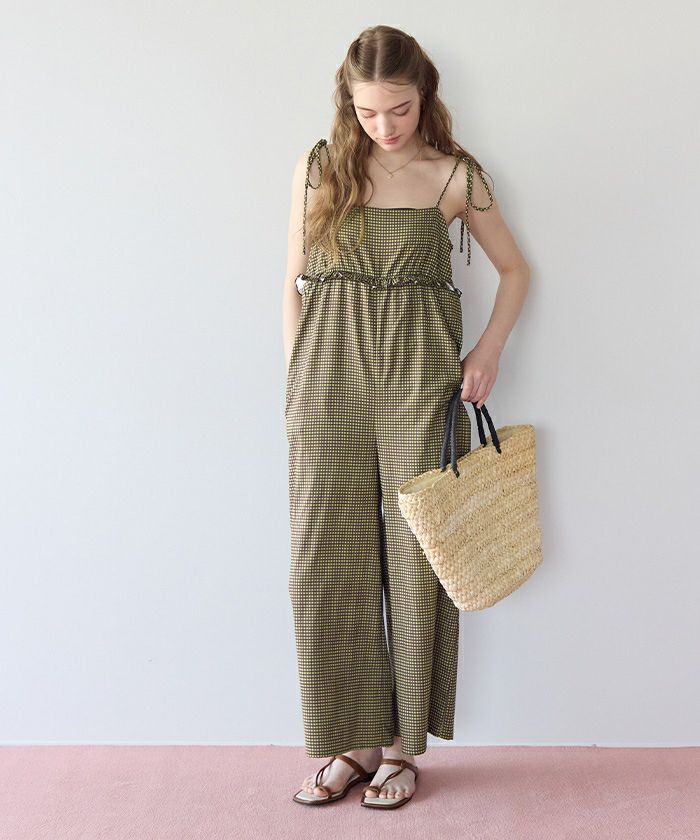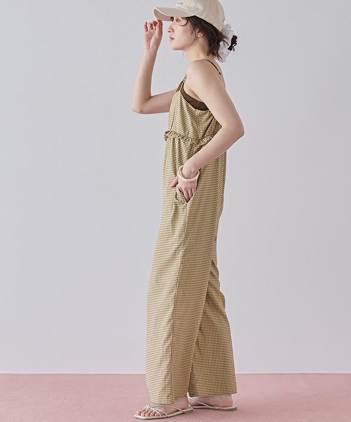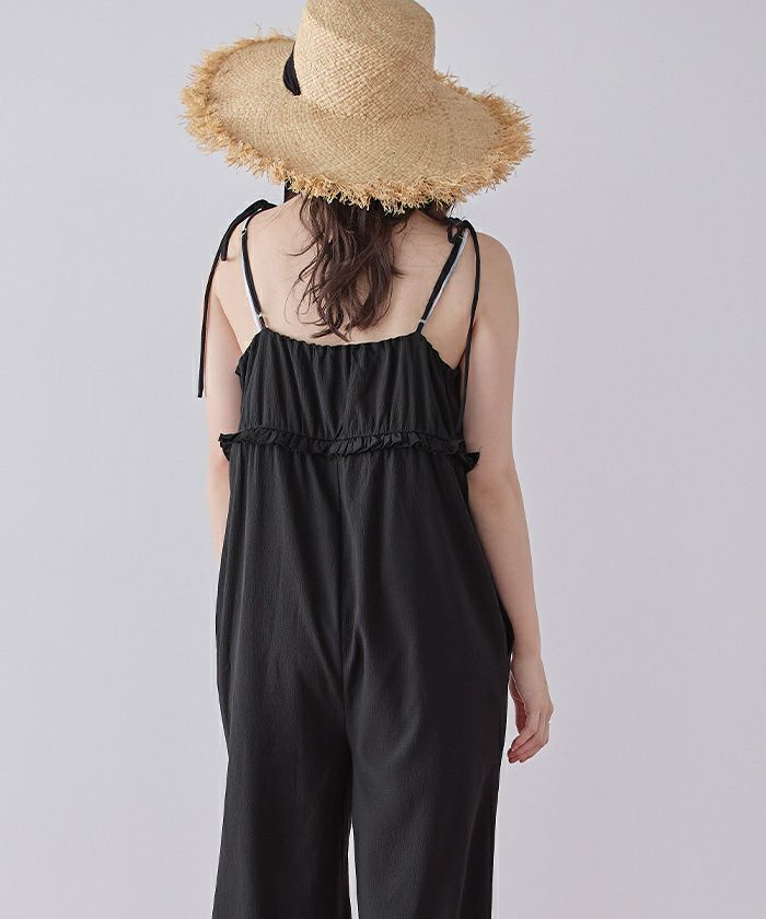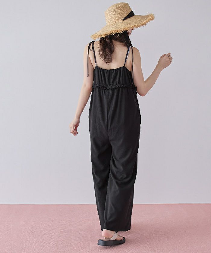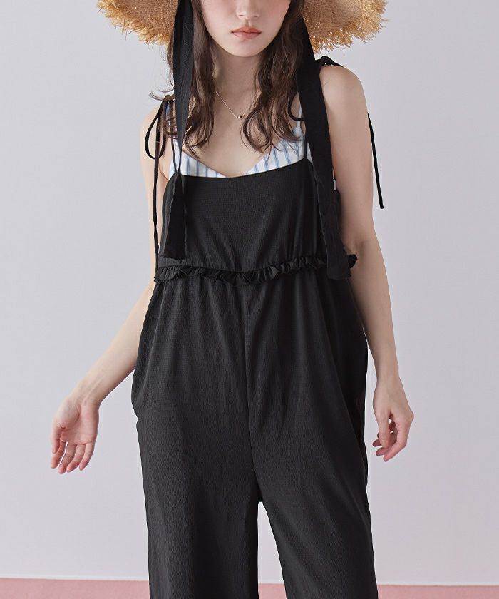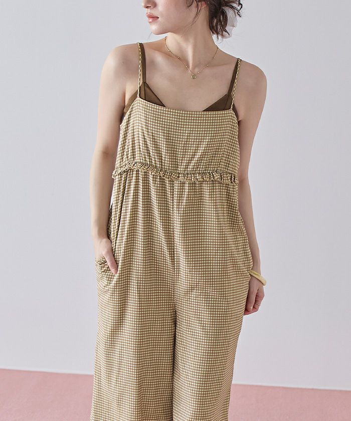 ・胸下のミニフリルがポイントになったキャミソールオールインワン。