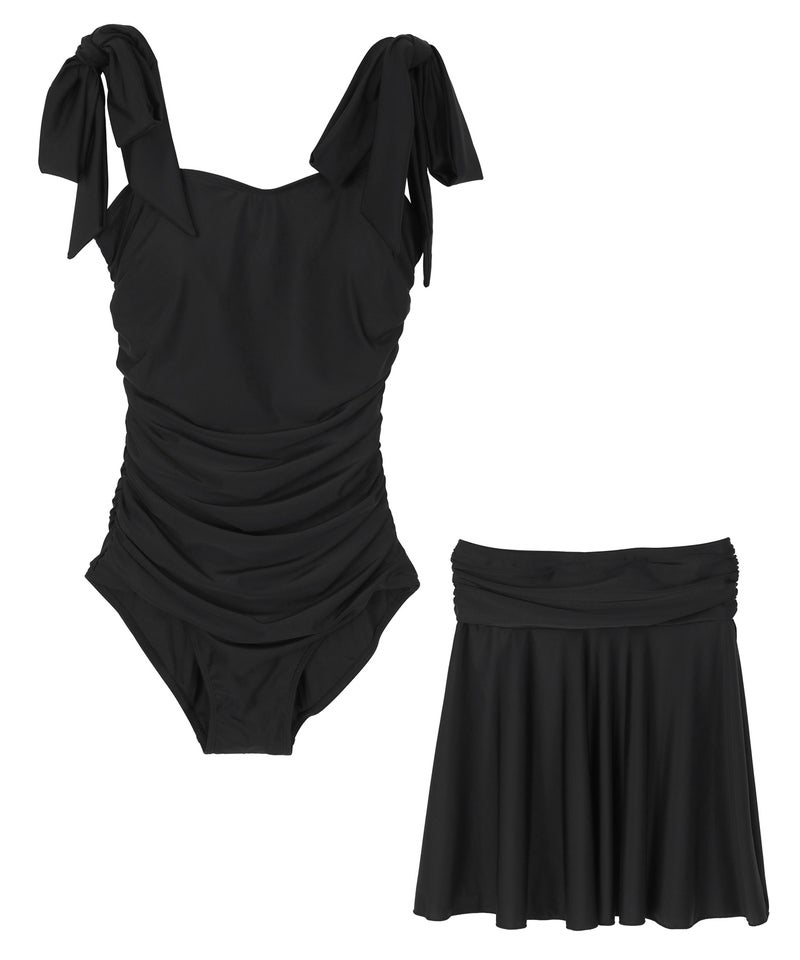 ・スカート付きで体型をさりげなくカバーしてくれる、ワンピースタイプの水着。