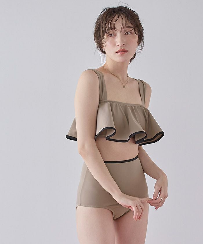 パイピングフリルハイウエストビキニ/水着【SEADRESS シードレス】【メール便可/100】
