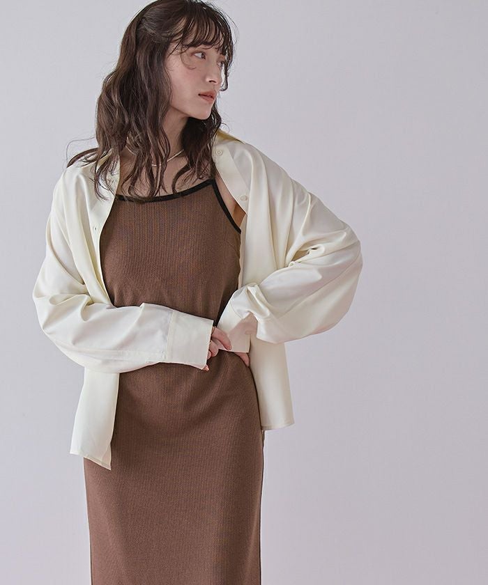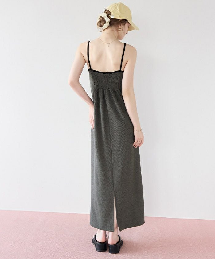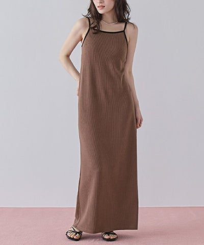 ・カップ付きで1枚でもさらりと着られるキャミソールワンピース。